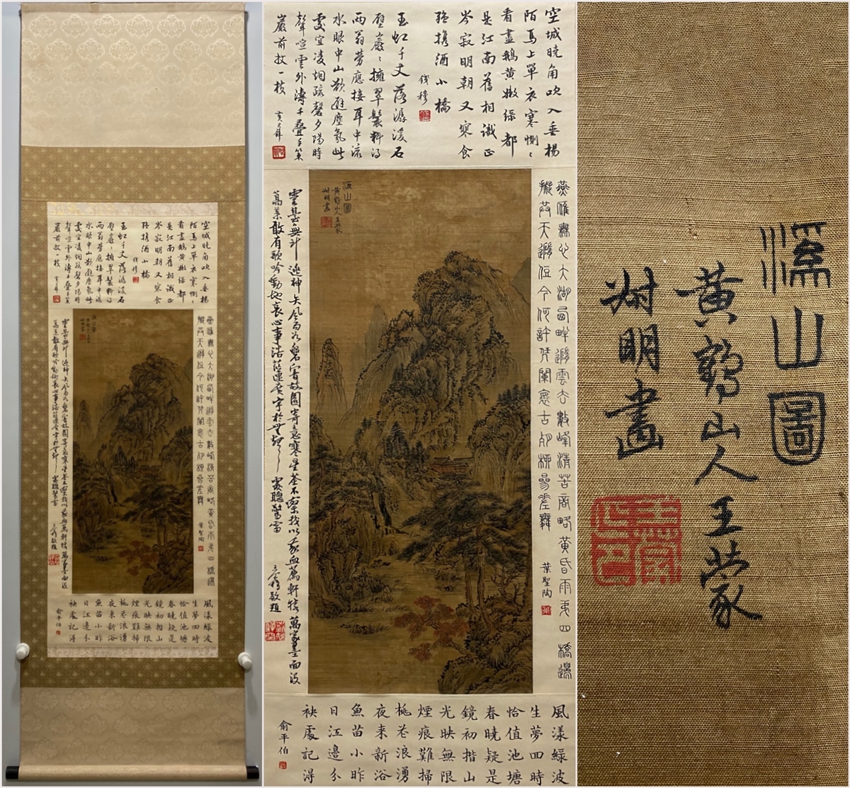 - 古美術 掛け軸 中国・明時代 「王蒙書」 絹本 【渓山図】 立軸 書道 巻き物 真筆逸品 肉筆保証 唐物 古画 LT-240830
