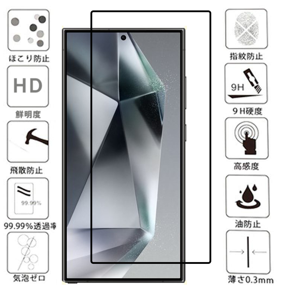 - 黒 Galaxy S24 Ultra 5G ガラス フィルム SC-52E SCG26 ギャラクシー 液晶 画面 保護 スクリーン カバー シール シート 頑丈 Film 9H