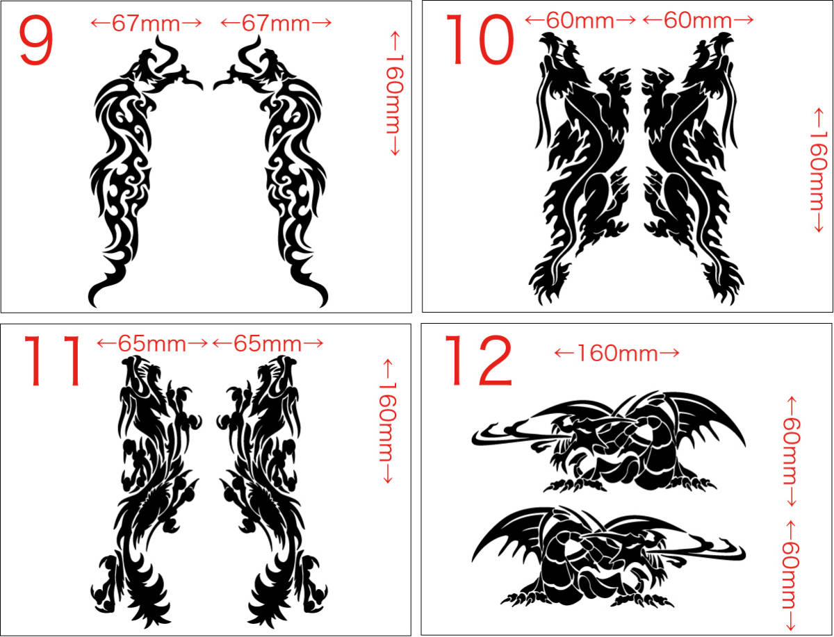 - ドラゴン 龍 トライバル2(左右1セット)・9-16 (8種中1点選択) カッティングステッカー 耐水・耐候 車やバイクのワンポイントやキズ隠しに