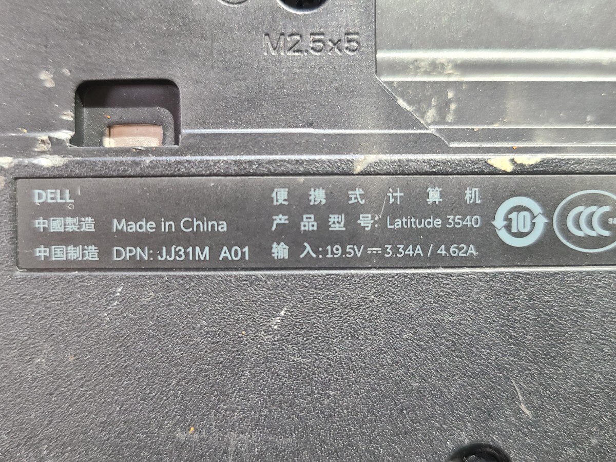 - 【ジャンク品】管1E62 DELL LATITUDE 3540 CPU core i5-4200U HDD無し、HDDマウント有り、メモリー無し、バッテリ-無し 通電OK