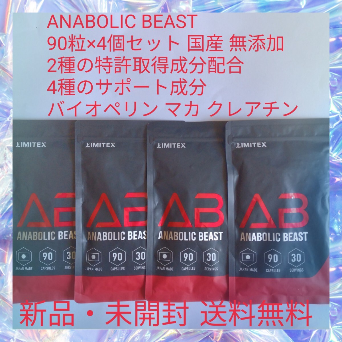 > ANABOLIC BEAST 90粒×4個セット 国産 無添加 2種の特許取得成分配合 4種のサポート成分 バイオペリン マカ クレアチン ビタミンD3 サプリ
