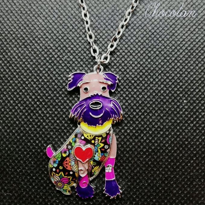 - 【送料無料】シュナウザー B 紫 ネックレス【正面】【新品】