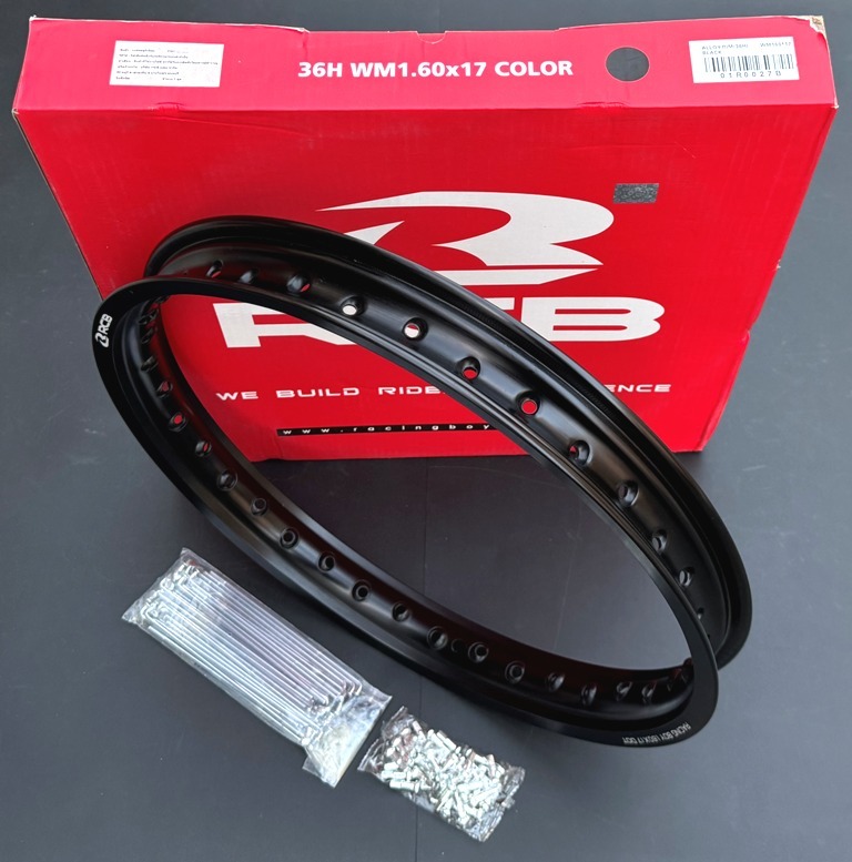 - ハンターカブCT125 フロント 適合 RCB (レーシングボーイ) アルミリム ブラック1.60×17 & スポークセット 新品 ※アルミリム装着セット