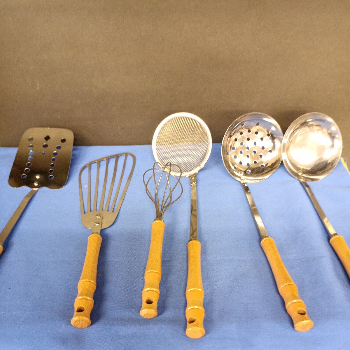 - 昭和レトロ■キッチンツール 6点 お玉 穴あきお玉 ターナー 泡立て器 かすあげ