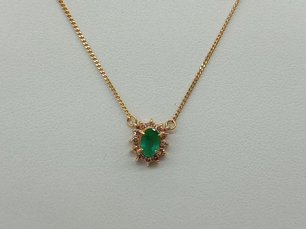 > 【K18】 約42cm ダイヤ 0.21ct 天然エメラルド 0.39ct ネックレス 金 ソーティング付き 中古
