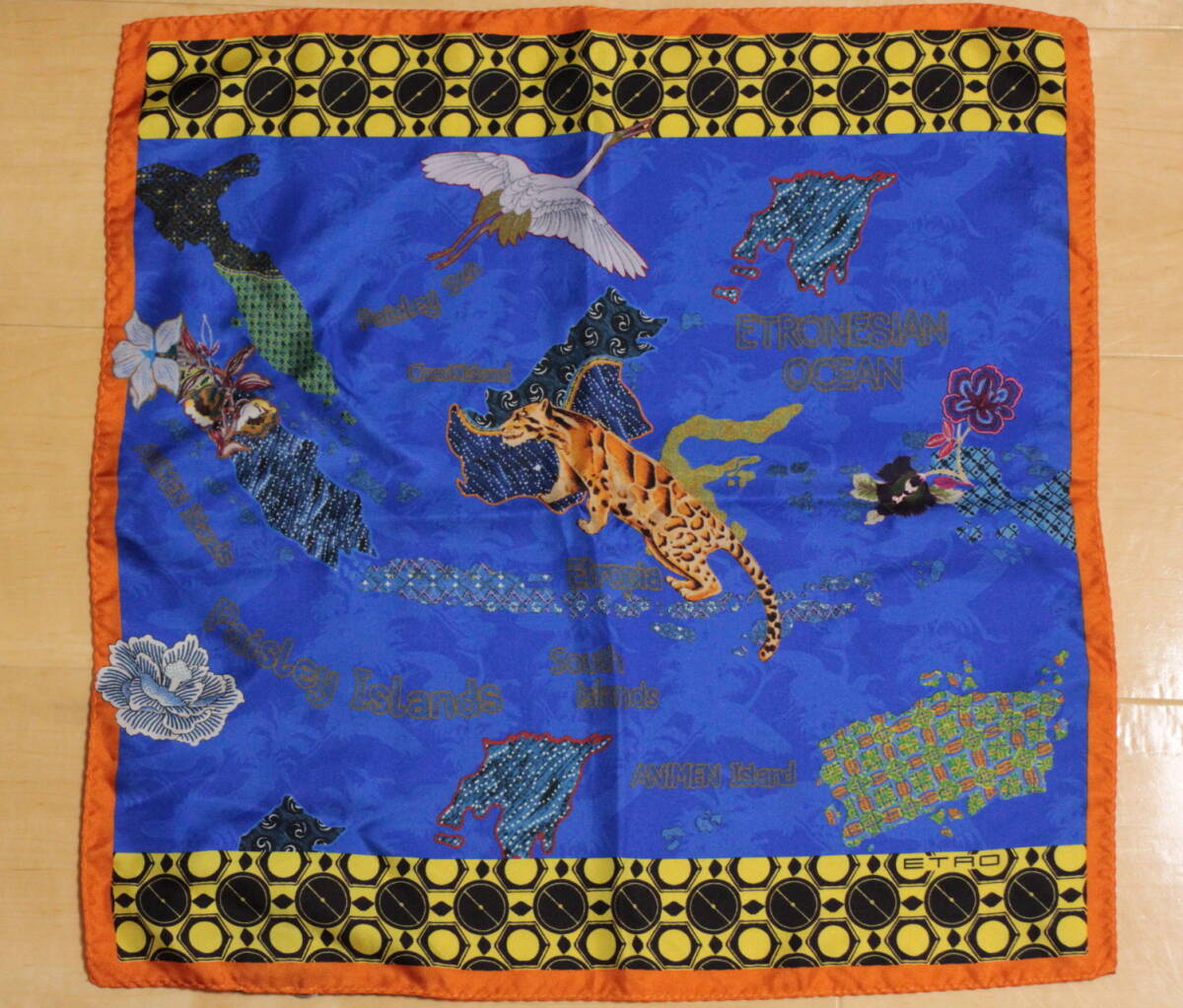 - エトロ新品シルクチーフ洒落者の遊び心アイランドマップモチーフ動物柄*ハイビスカス*ペイズリー柄ハンドメイド