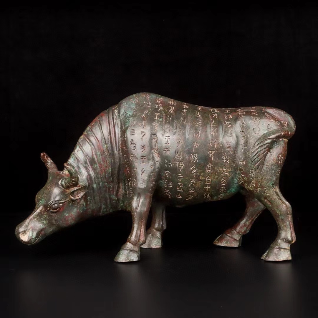 - 『漢代・館蔵珍品・青銅器彫・牛尊・銘文・置物』極細工・東洋彫刻・骨董品・古賞物・中国古玩・中国古美術