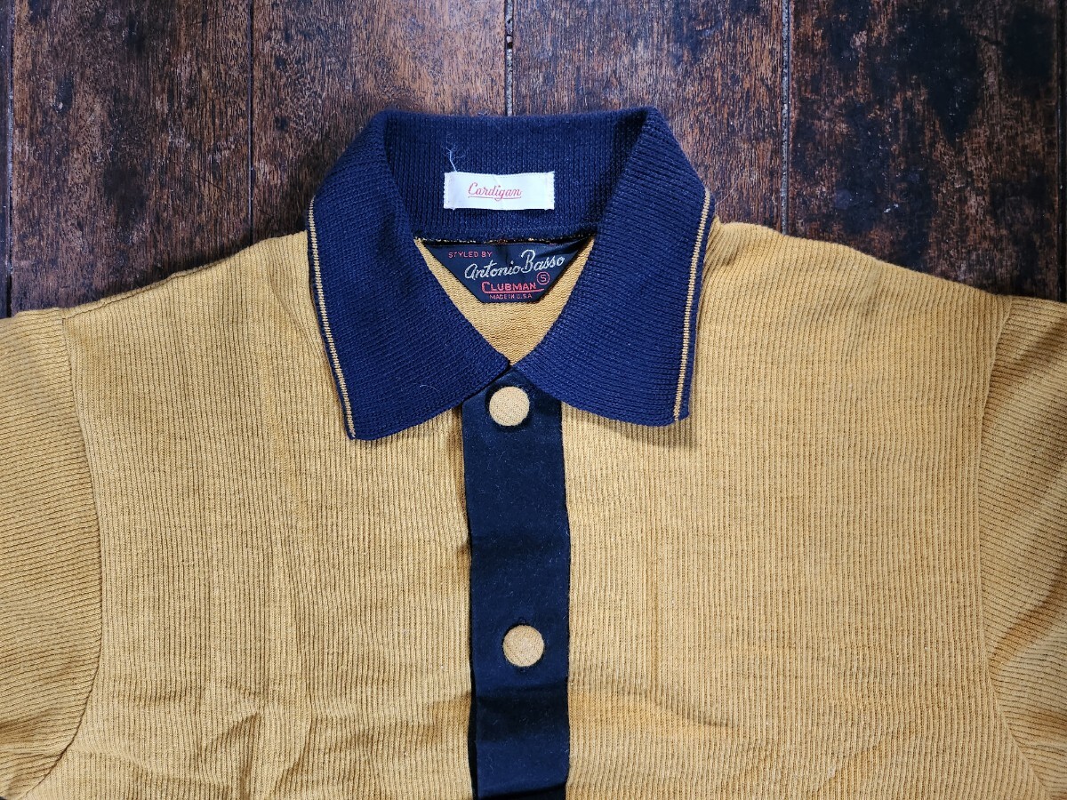 > レア★ ニット カーディガン オープン ポロ シャツ マスタード くるみ ボタン アジャスター ビンテージ からし ウール セーター ジャケット