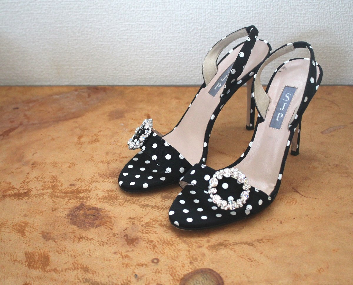 > ★SJP by Sarah Jessica Parker『ビジュサンダル*ドット柄size23-23.5cm36 1/2* 黒×白*イタリア製』古着のgplus広島 2408s2