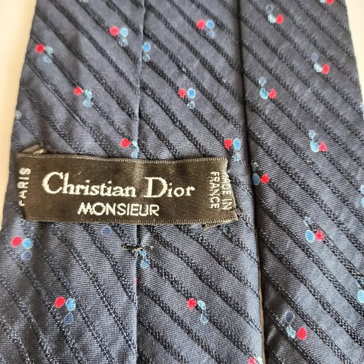 - Christian Dior(クリスチャンディオール)黒紺赤点ストライプネクタイ