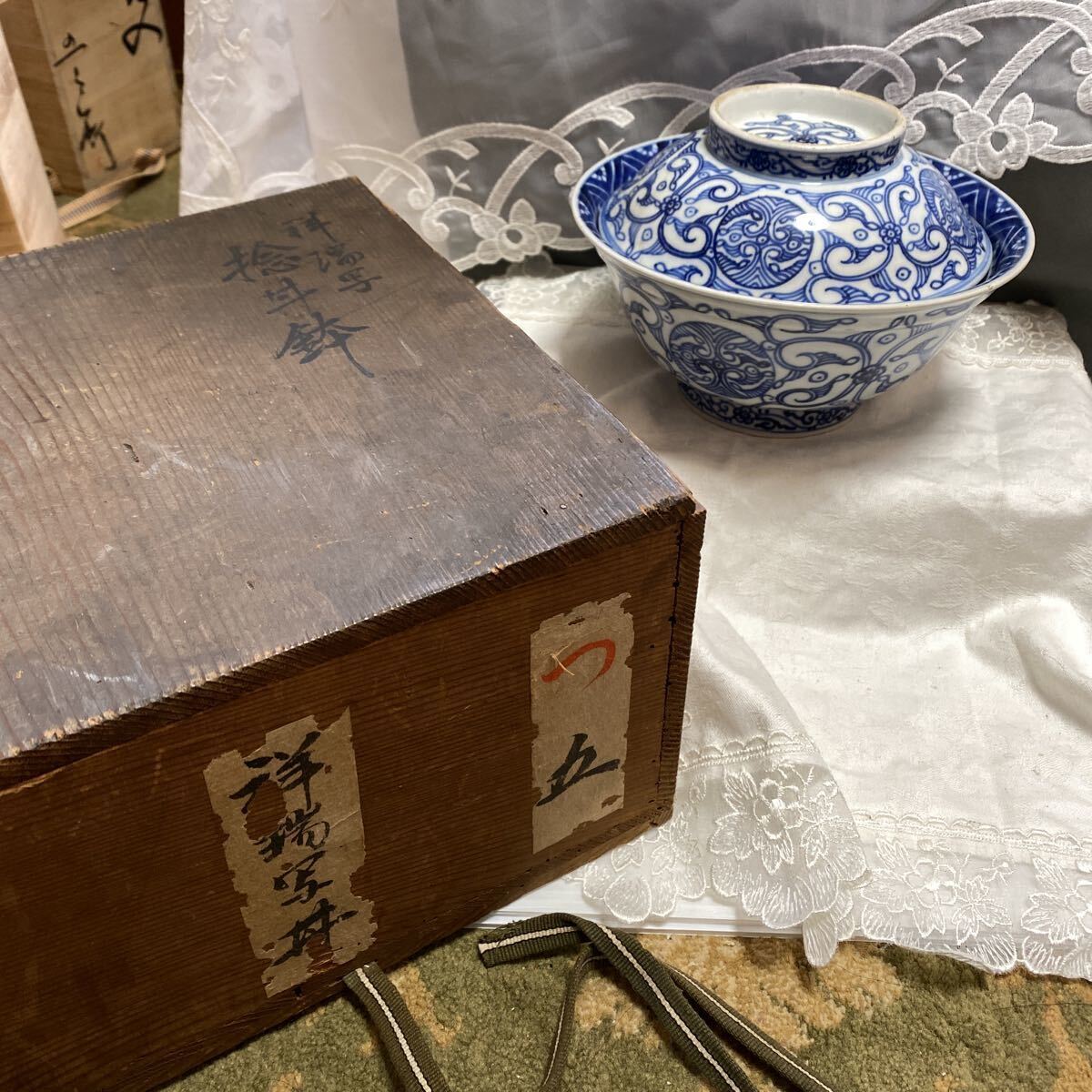 - 逸品 祥瑞写 捻丼 染付 蓋付き鉢 味わい深いお品物 箱付き 期間限定最終処分特価