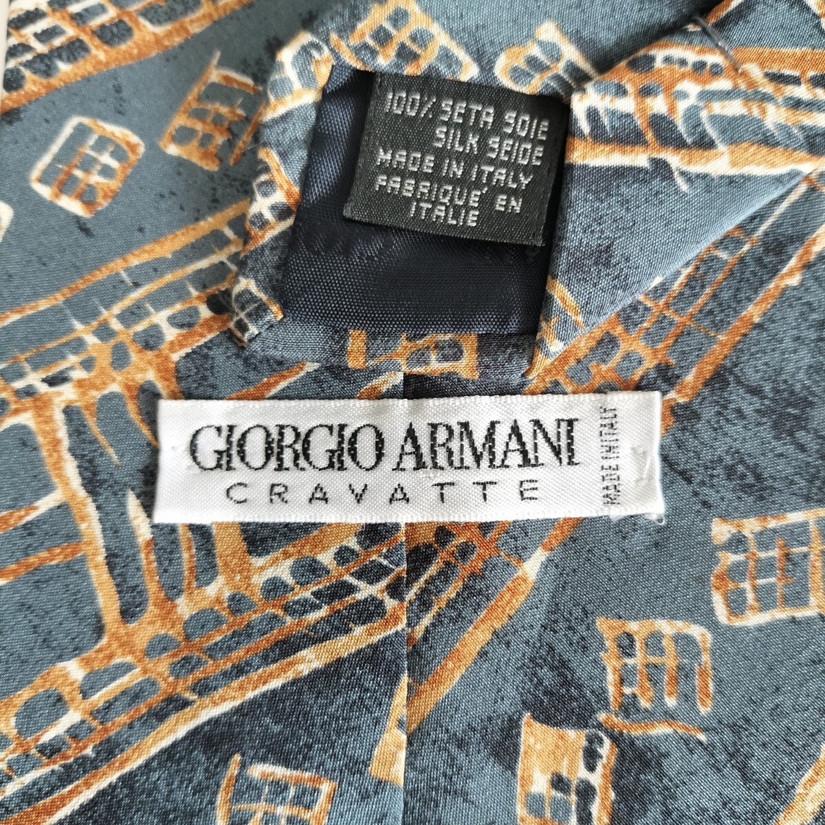 - GIORGIO ARMANI(ジョルジオアルマーニ)紺茶梯子ストライプネクタイ