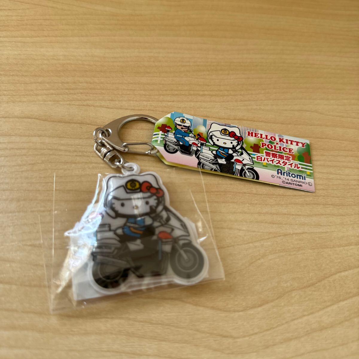 - ハローキティ 警察限定 白バイスタイル 4.5センチ ラバーキーホルダー リフレクター素材