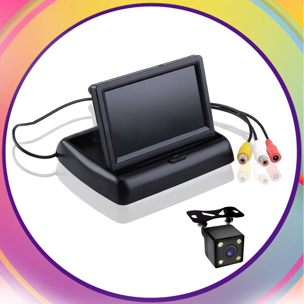 - タイムセール!送料無料!4.3インチフリップ式 バックカメラセット 12V車対応 オンダッシュモニター LED付きバックカメラ ガイドラインあり