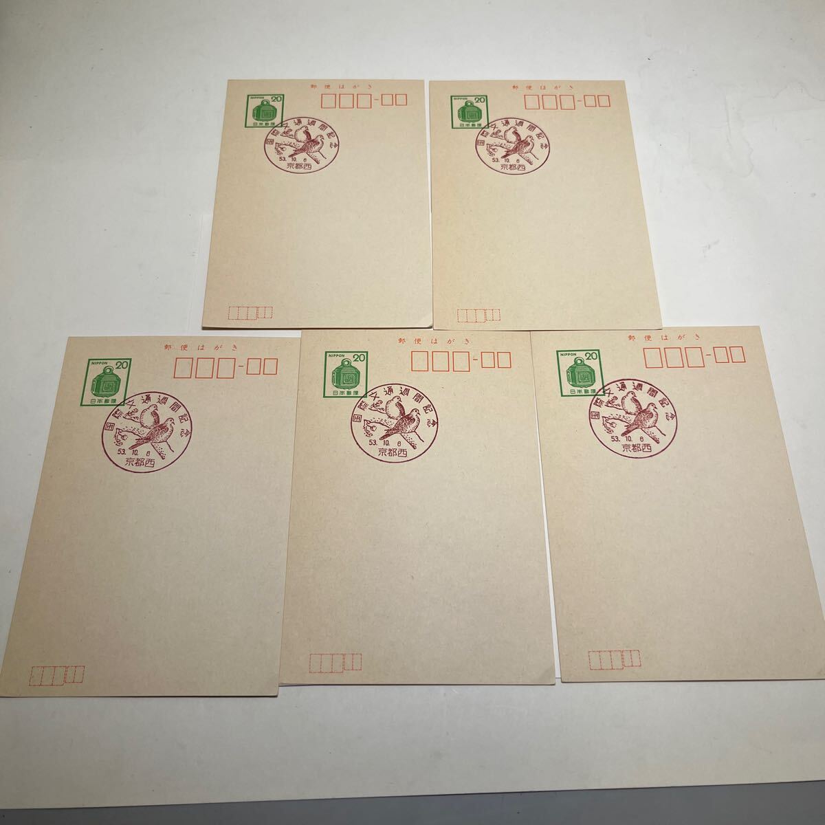 > 20円郵便はがき 5枚 昭和53年10月6日 国際文通週間記念 初日カバーFirst day Cover 1978年10月 京都西印 【送料84円】(E)