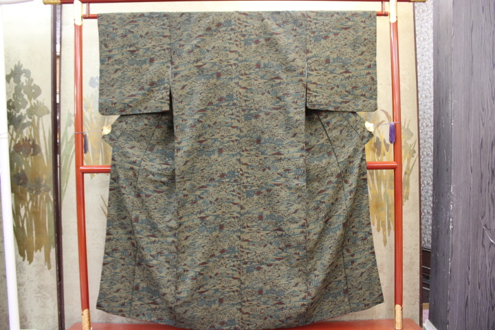 > きもの今昔7440 小紋のきもの バチ衿袷手縫い仕立 正絹羽二重でサラリとした風合です 未使用に近い 身丈148cm