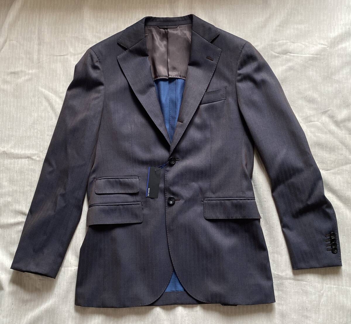 - ジャケット ブレザー Lサイズ MORLES 秋冬春物 ウール混 光沢縦縞チャコールグレー系 20.900円品□□未使用品