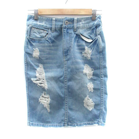 > エゴイスト EGOIST デニムスカート タイトスカート ひざ丈 ダメージ加工 1 S 水色 ライトブルー /HO9 レディース