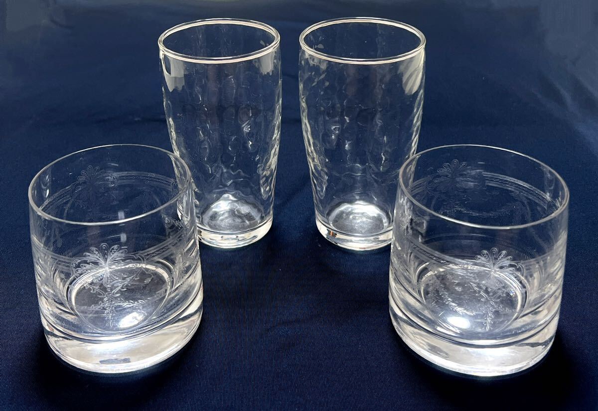 - 工芸ガラス 一口ビールグラス2客&花柄ロックグラス2客 酒器