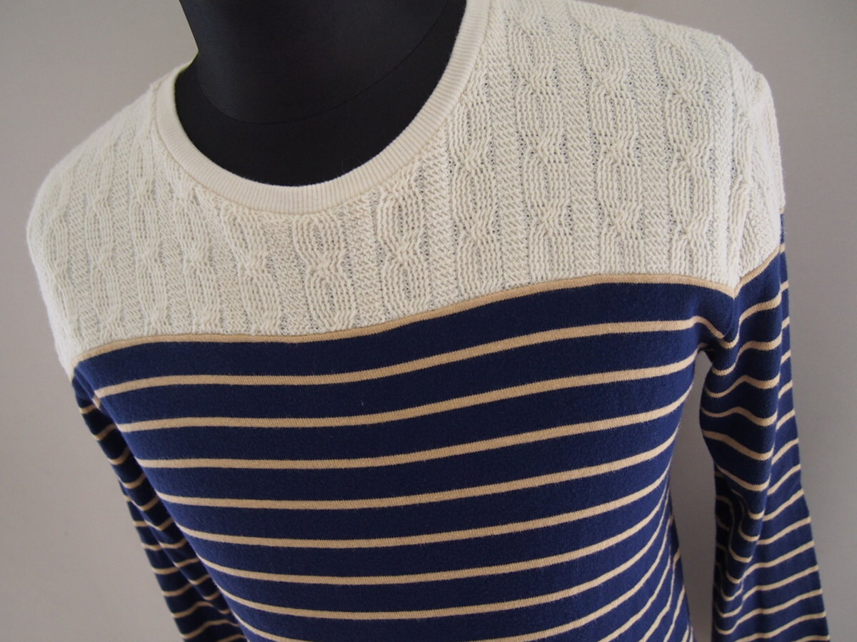 - シップスジェットブル-★長袖カットソー★異素材切替プルオーバー★ボーダーカットソー×ケーブルニット切替★Mサイズ★SHIPS JET BLUE