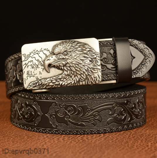 > 新品 レザーベルト オートロック式 バックル イーグル メンズベルト 本革 幅3.5センチ 柄物 長さ調整可能 2色選ぶ/シルバー黒