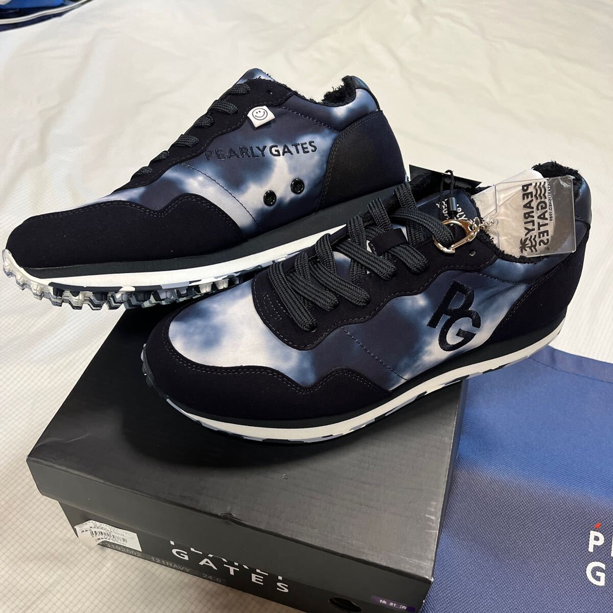 - 新品正規品 パーリーゲイツ ゴルフ シューズ 24cm スパイクレス タイダイ柄 ローカット チャーム付き 高機能 送料無料 ネイビー