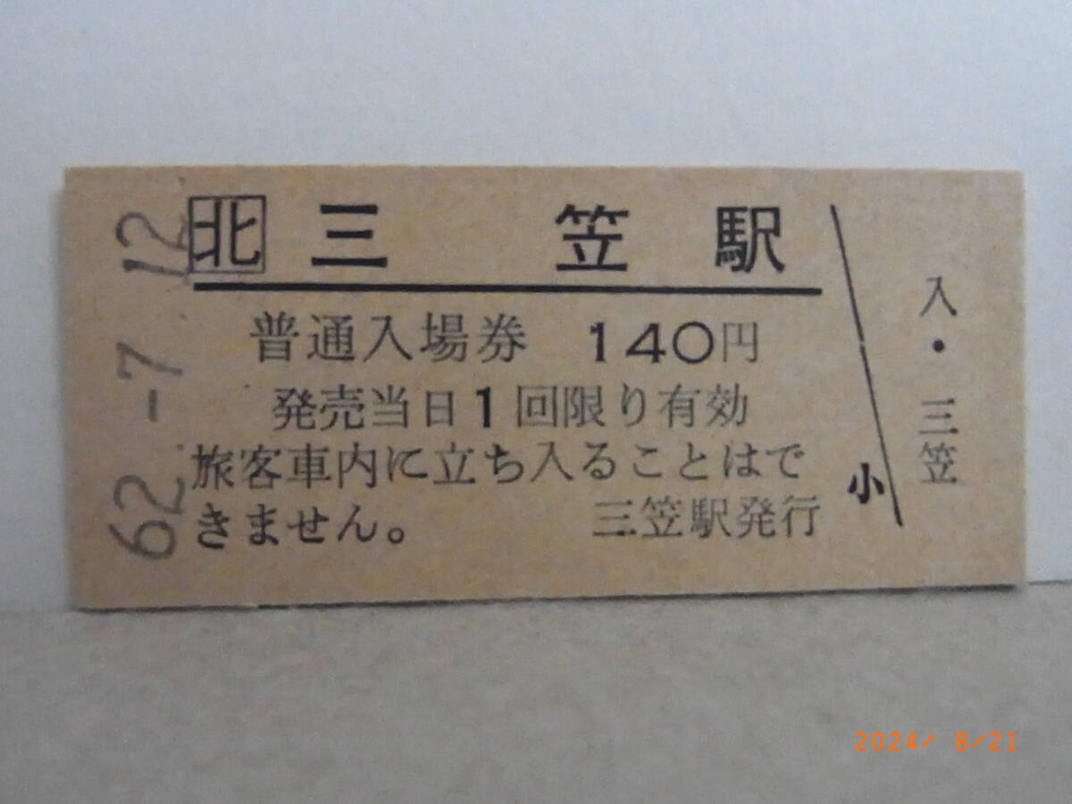 - ■廃駅化前最終日■ JR北海道 幌内線 三笠駅 140円普通入場券 昭62.7.12 1754 ★送料無料★