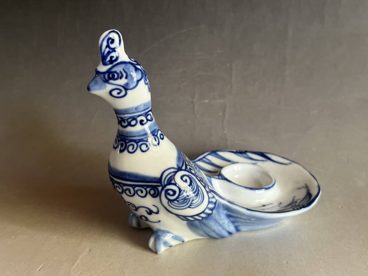 > 燭台■鳥 染付 乾龍年製 置物 オブジェ 香立 飾皿 古玩 唐物 中国 古美術 時代物 骨董品■