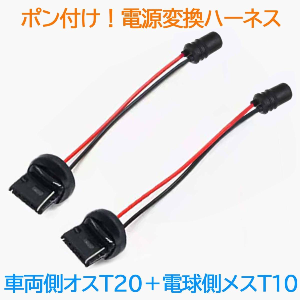 - 電源変換ハーネス 2本■車両側オス:T20シングル+電球側メス:T10.T16兼用■配線延長コネクター・アダプター■オーダー可能!