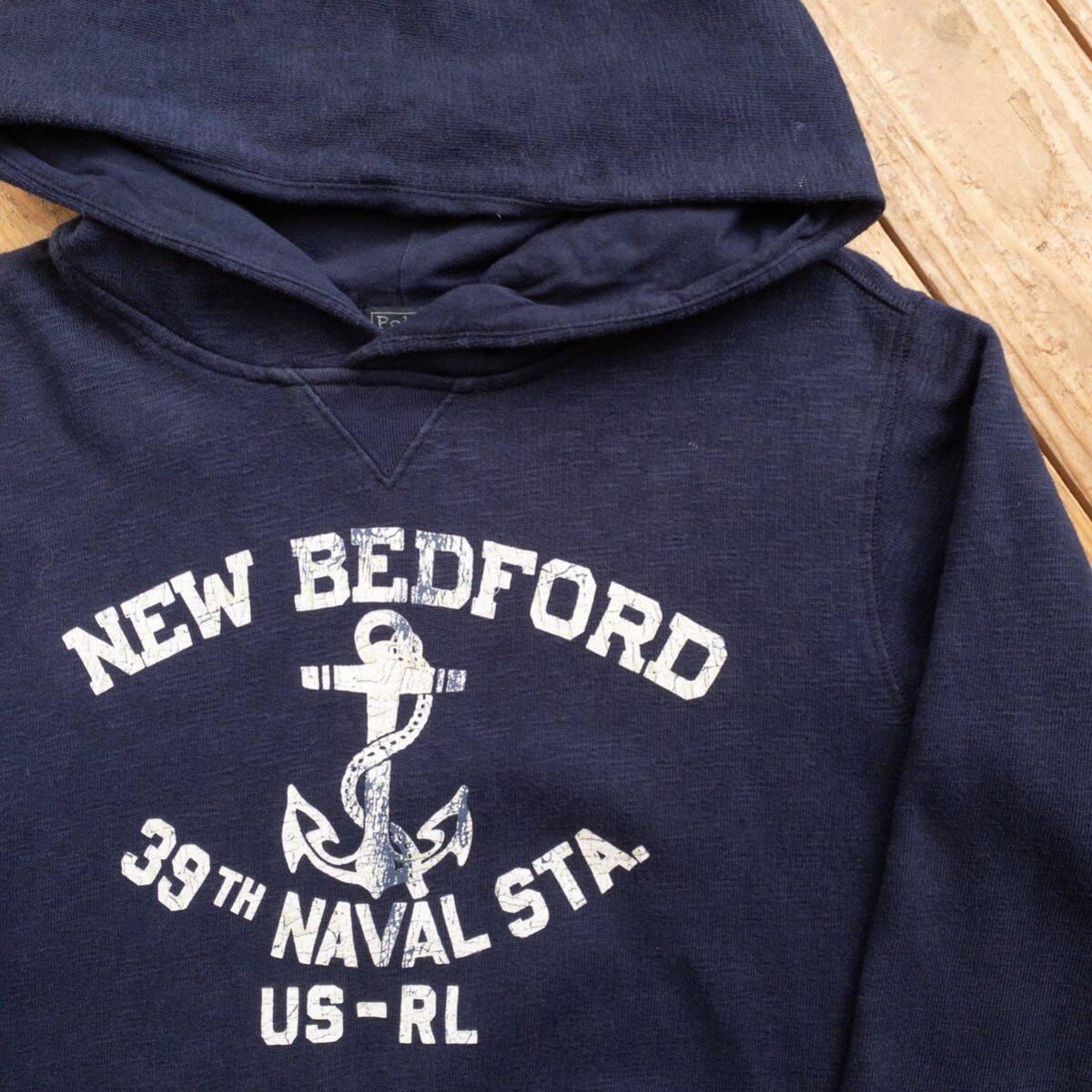 - USA古着 POLO Ralph Lauren ポロ ラルフローレン スウェットパーカ ボーイズ M(10-12)サイズ キッズ ネイビー アメカジ おしゃれ S0830