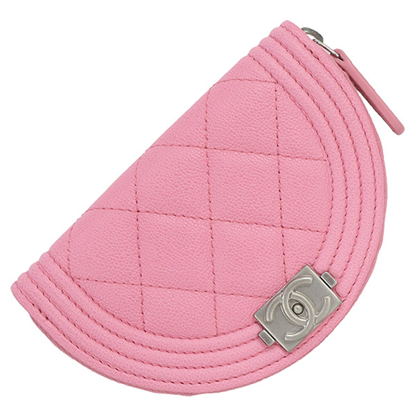 > シャネル コインケース 財布 ハーフムーン ボーイシャネル マトラッセ キャビアスキン ピンク h-h148