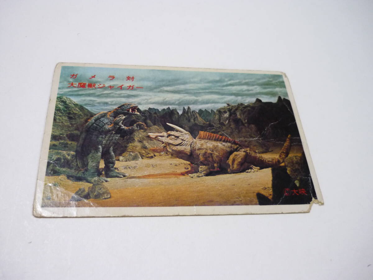 - [管00]【送料無料】カード 駄菓子屋 ガメラ対大魔獣ジャイガー 近距離 当時物 特撮 ブロマイド L版