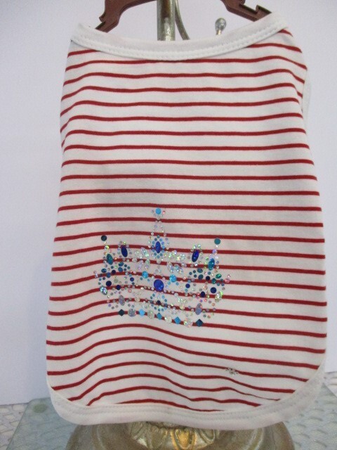 - DOG CAT 犬 猫 ペット 服 綿 ラメ スパンコール クリスタル ボーダー 白 赤 柄: 王冠 クラウン オリジナル 限定 新品 未使用 サイズ: 3号20