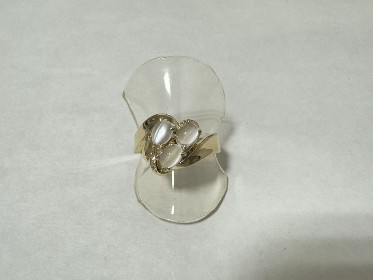 - 【質屋 尾張屋商店 東京】 ☆仕上済☆ K18YG ムーンストーンキャッツアイダイヤリング レディース #12