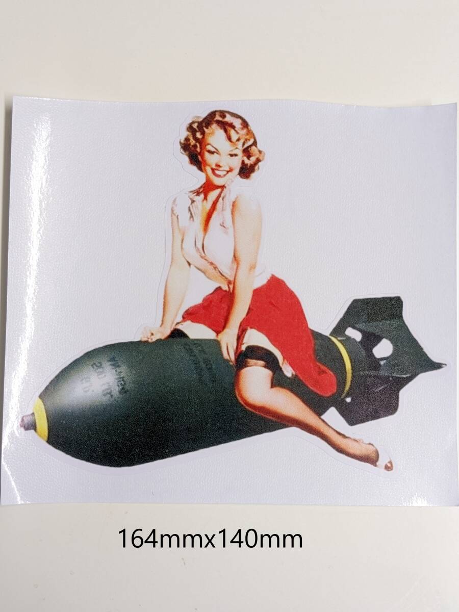 - 【在庫1枚のみ164㎜x140mm BOMB ミリタリー赤】ピンナップガール★セクシーガール★ミリタリーガールステッカー・軍・アーミー