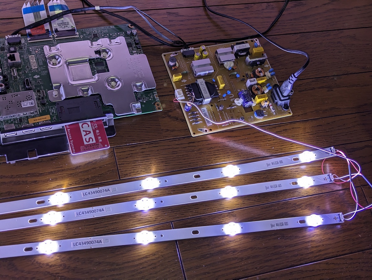 ■技術サポート可 条件付返品可 テレビのパーツ LEDバーの出品です。1枚目の点灯テスト時に写っている基板類は付属しません。別途出品しています。 |