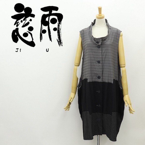 - ◆慈雨 ジウ センソユニコ マツオインターナショナル ボーダー柄 切替 ロング ジレ ベスト グレー×ブラック 40
