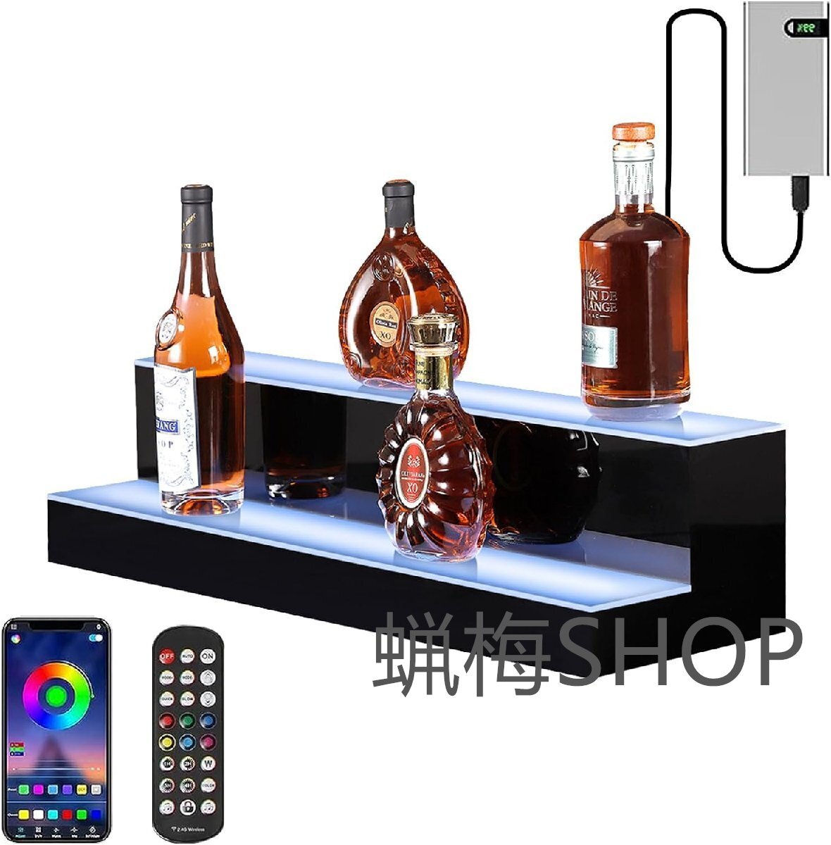 - インチLED照明付きリカーボトルディスプレイ2ステップ照明付きボトルシェルフ2層ホームバードリンクリモコン付き商用照明シェルフ
