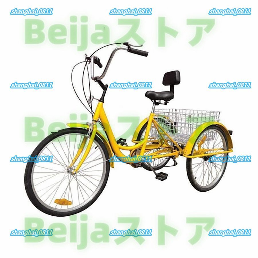 - 大人の三輪車三輪三ks自転車クルーザー7スピード、24インチホイール大人のトライク3輪自転車貨物貨物バスケット、女性、男性 イエロー