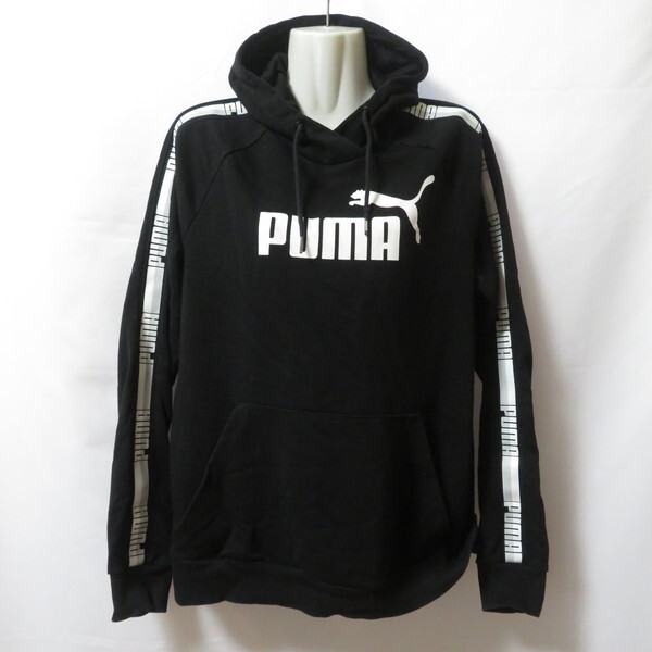> 古着 レディースL PUMA/プーマ スウェットパーカー プルオーバー フード スポーツ カジュアル ブラック 852139-01