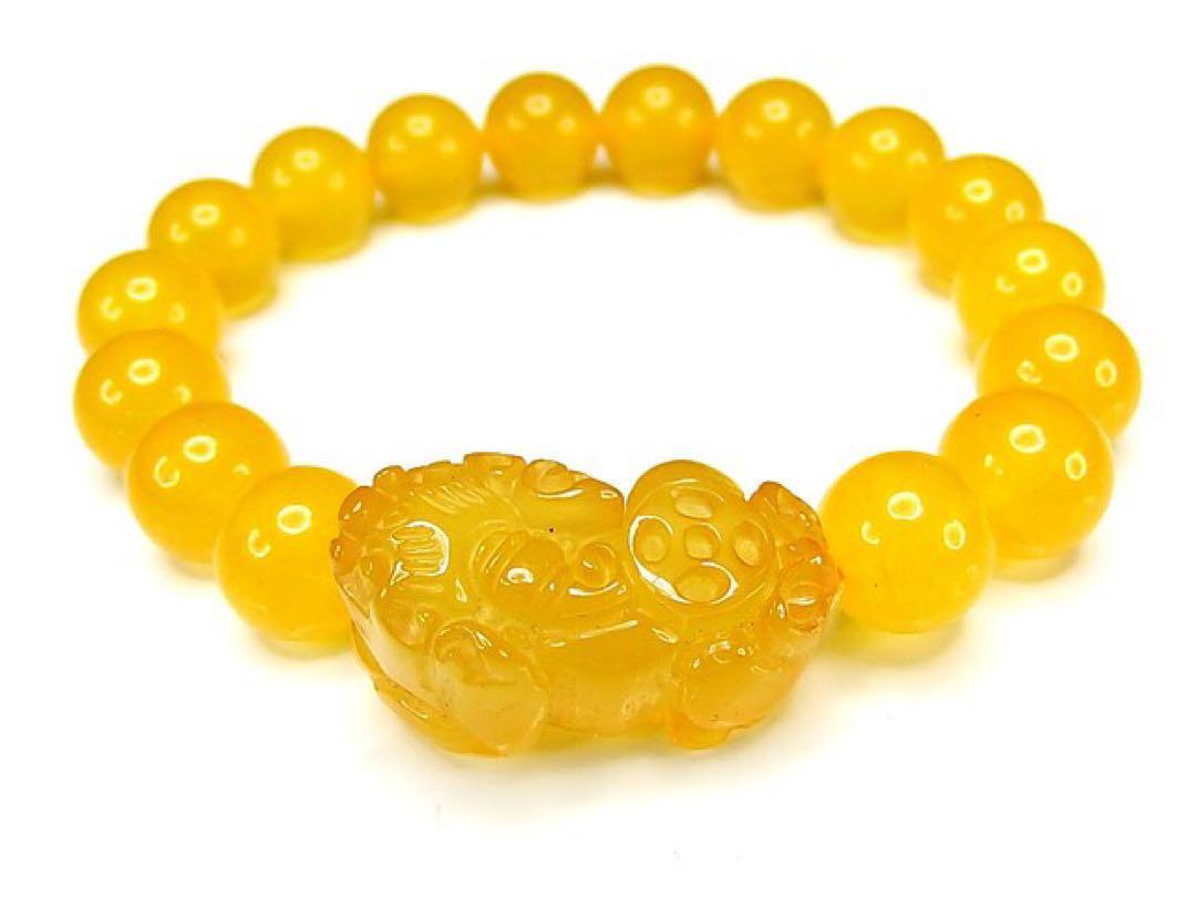 - AAAイエローアゲートヒキュウ彫り蓄財運ブレスレット10mm天然石石街プライム