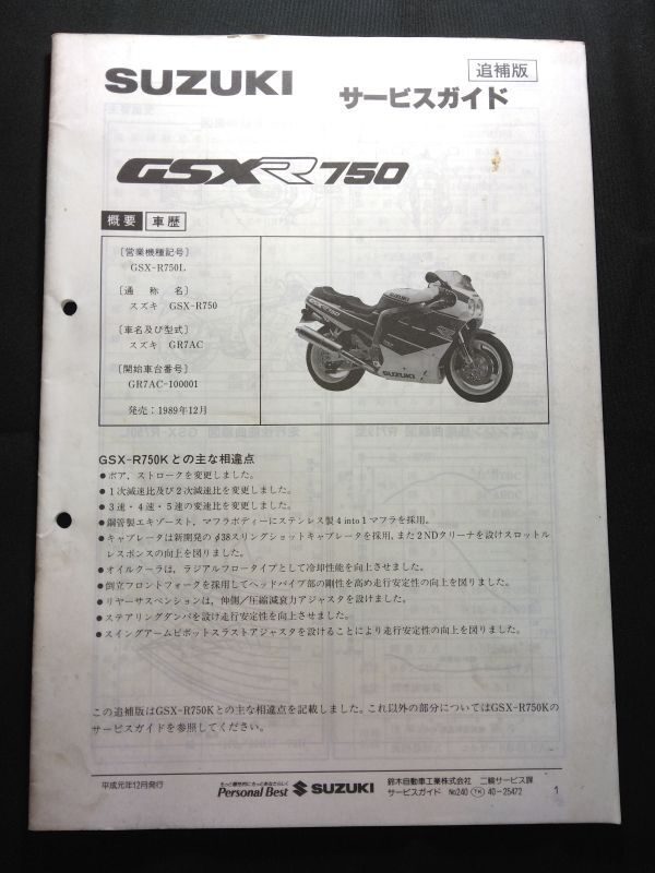- GSXR750(GSX-R750L)(GR7AC)(R719)GSX-R750 SUZUKIサービスガイド(サービスマニュアル)追補版