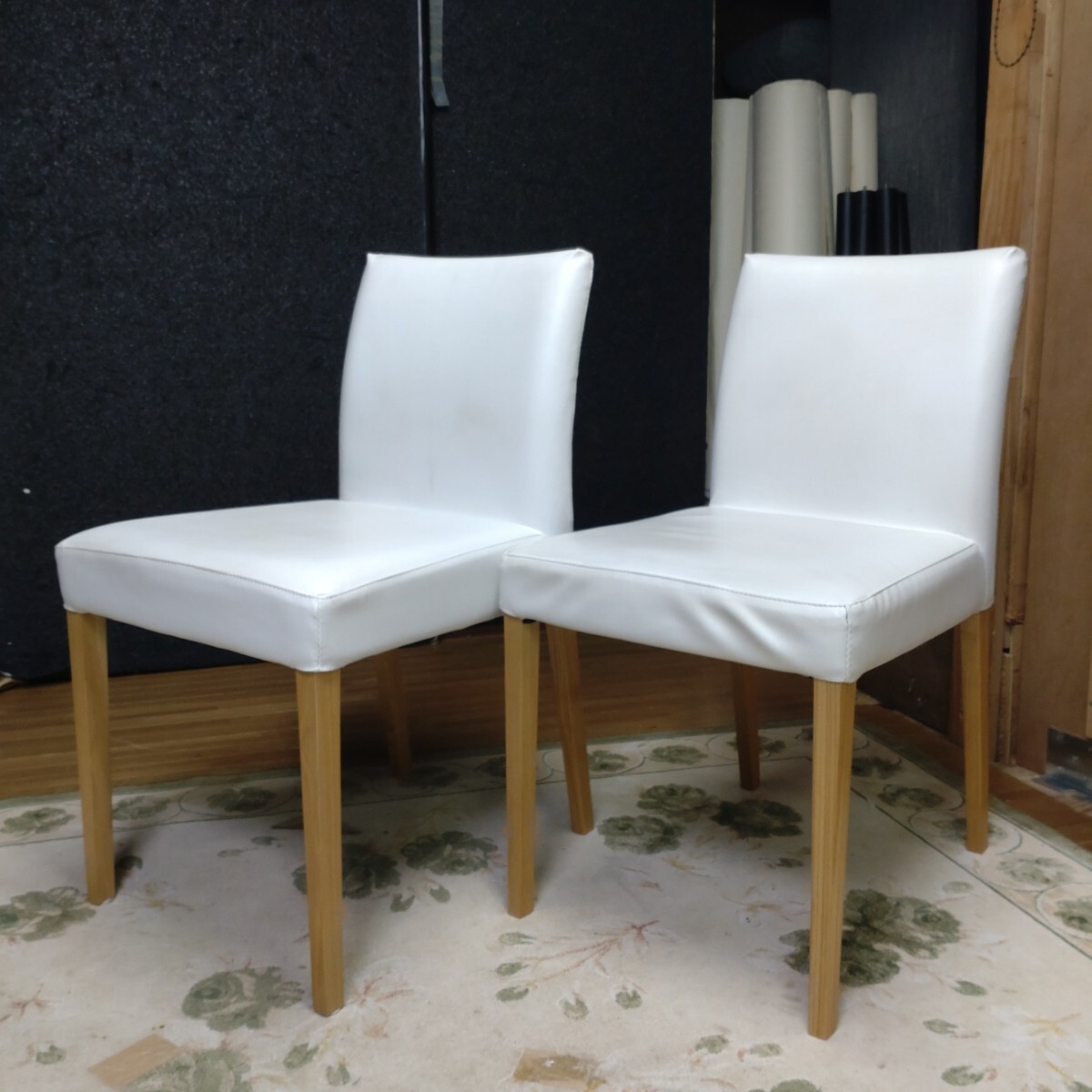 - 【店頭渡し推奨】 ダイニングチェア ホワイト ビニールレザー 木製フレーム 椅子 中古 現状渡し