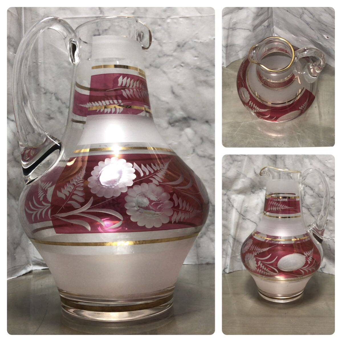 - ボヘミアガラス デキャンタ 23cm 金彩切子 ピッチャー 水差し ザクセンクリスタルガラス 650