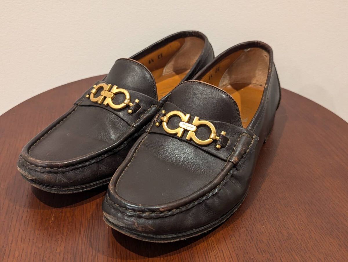 - 即決 サルバトーレ フェラガモ 紳士靴 6 1/2EE 茶 Salvatore Ferragamo ガンチーニ ローファー 革靴 本革 レザー ドレス ビジネス シューズ