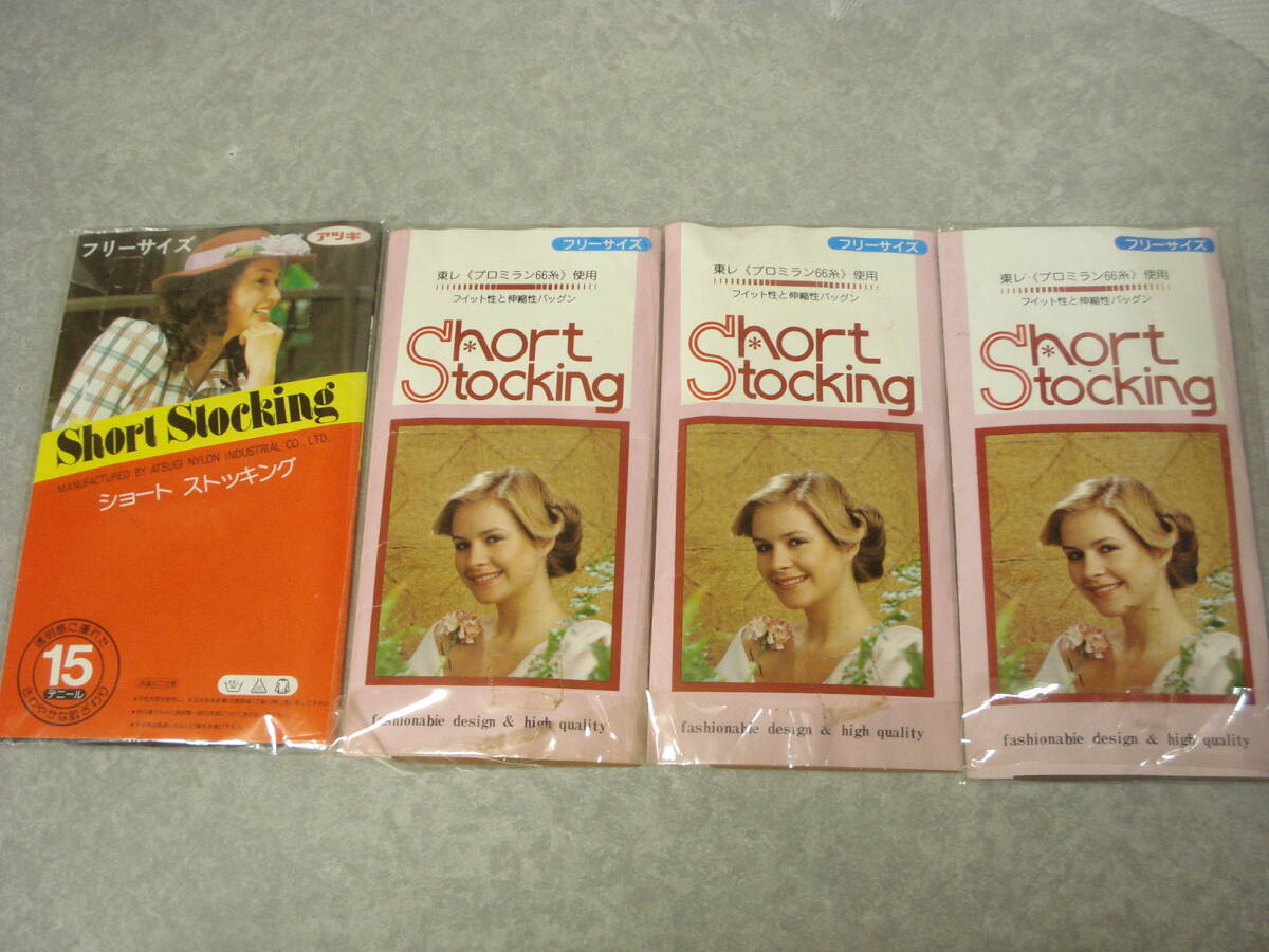 - ☆ レトロ ナイロン100% ハイソックス ショート ストッキング 4袋☆ フリーサイズ 男女兼用 アツギ