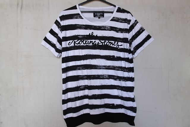 - The Rolling Stones/半袖Tシャツ/手描き風ボーダー柄/裾サイドファスナー開閉/裾ワッフル生地切替/白/ホワイト/黒/ブラック/Lサイズ(9/5R)