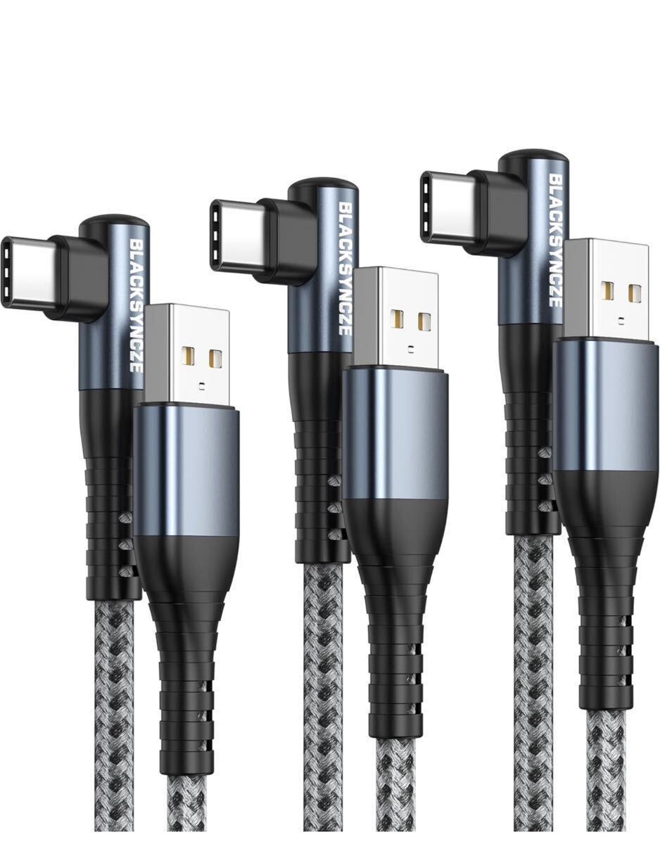 > USB Type C ケーブル L字型【3本セット 1M+1M+2M】タイプc ケーブル 3.1A 急速充電 高速データ転送 iPhone15ケーブル
