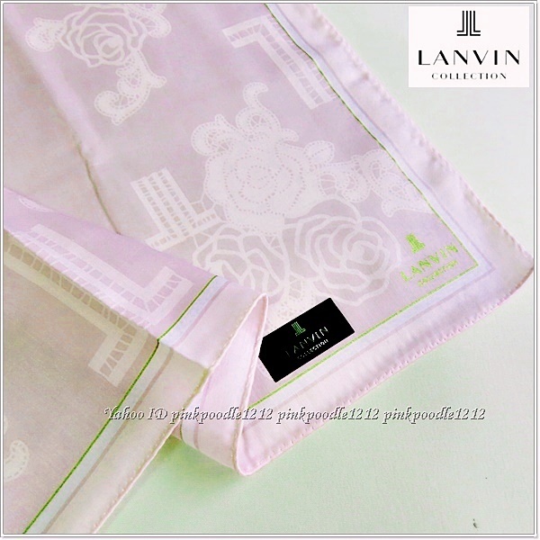 - ◆ランバン 日本製 大判 ハンカチ 未使用◆ランバンロゴ 薔薇 薄パープルピンク◆