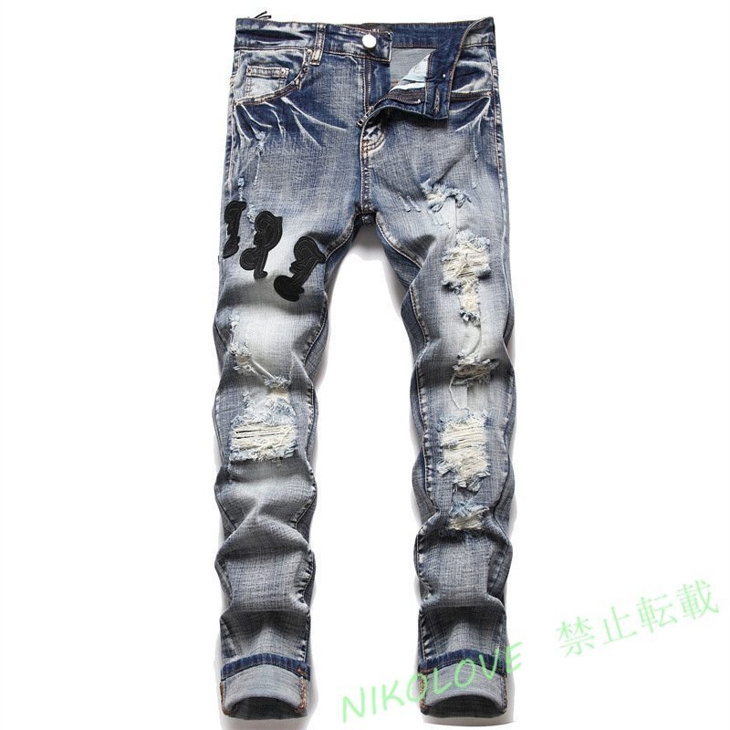 - 新品 メンズ デニムパンツ 個性ジーンズ ジーパン ダメージ加工 スキニーパンツ ストレッチパン大きいサイズあり W29~W38 LF869